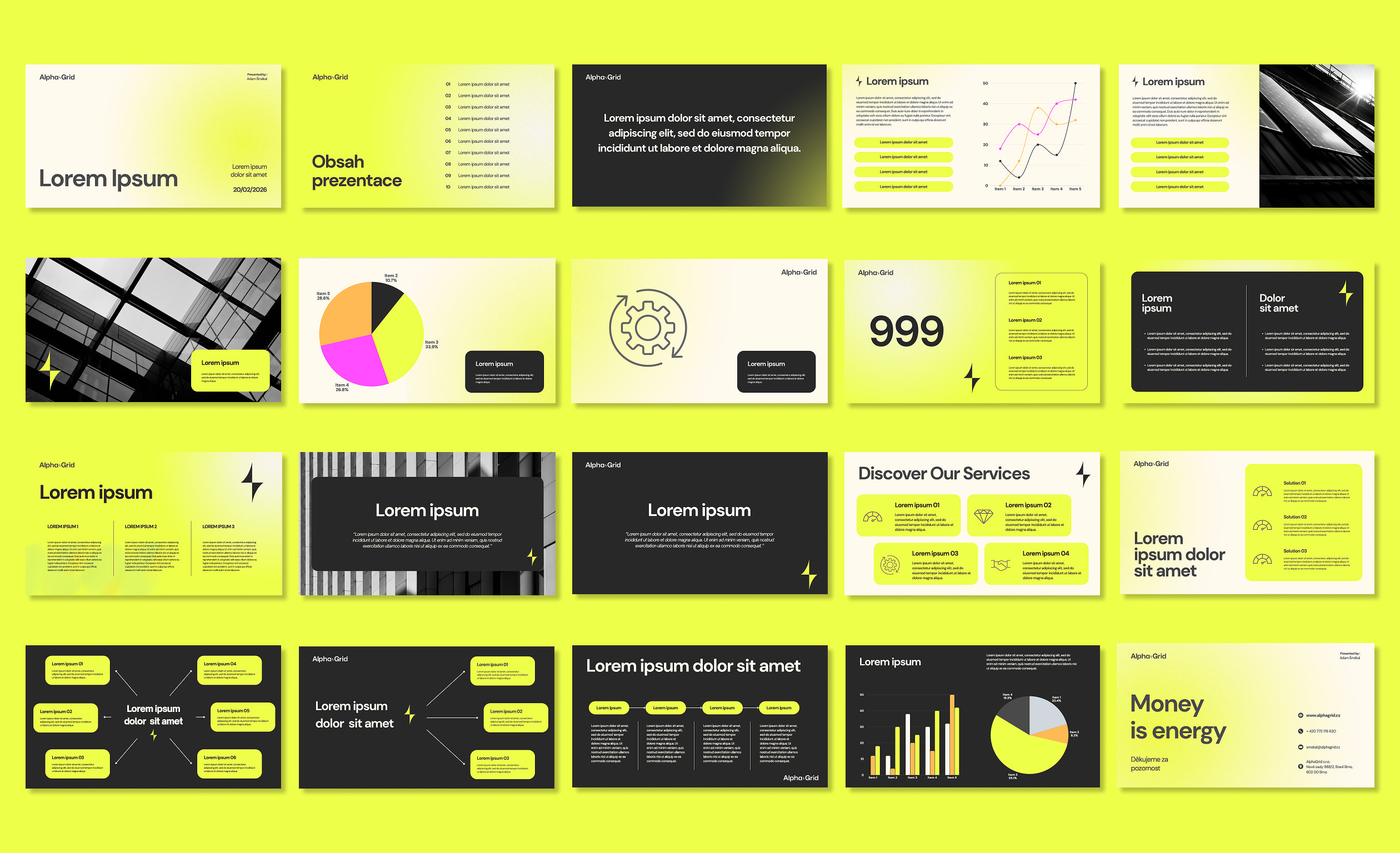Aby byl AlphaGrid snadno rozpoznatelný mezi konkurencí, vyměnili jsme typickou modrou a zelenou paletu za výrazné kontrastní barvy inspirované světem dat, tradingu a digitální infrastruktury.