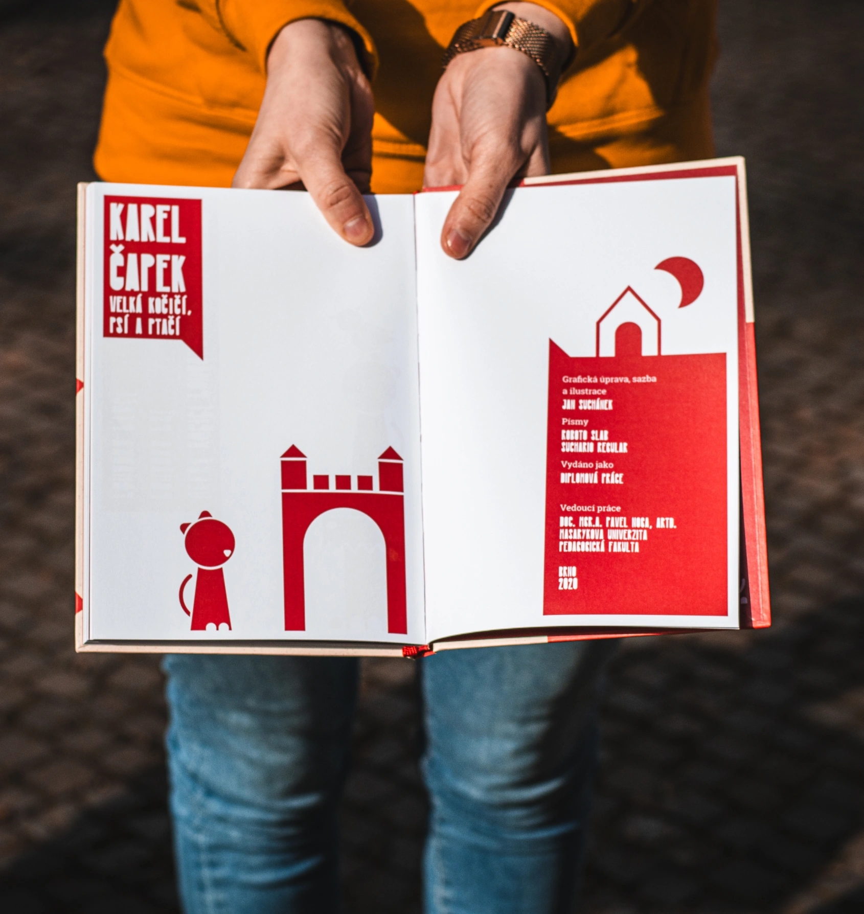 Grafické zpracování obálek knih zaujme svým geometrickým pojetím. Zatímco na přední straně se v písmenu “Č” ukrývají obrázky s odkazy na obsah knihy, druhou iniciálu nalezneme na zadní straně.