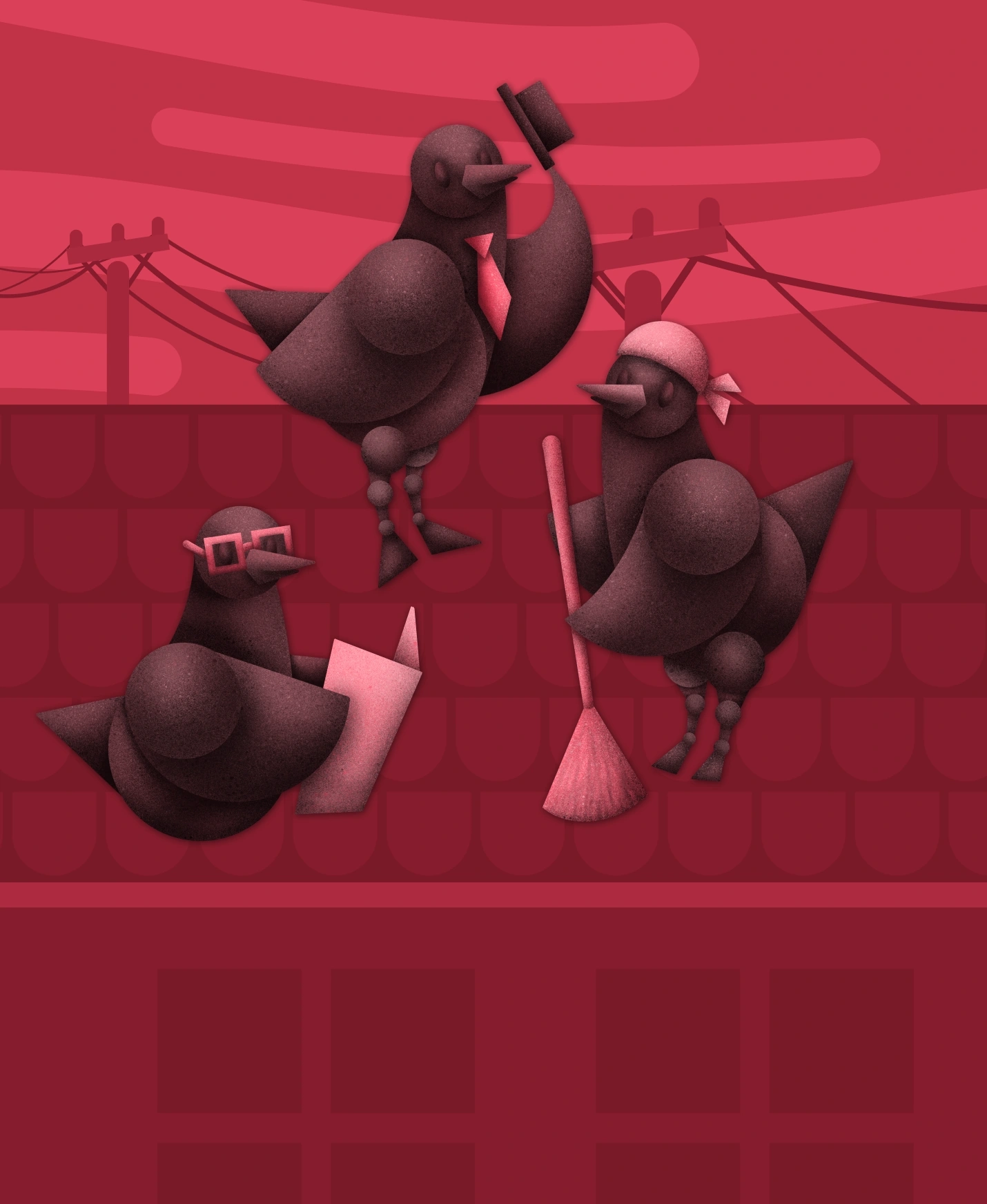 Jednobarevné piktogramy, vytvořené opět ze základních tvarů, mají v knize dvojí využití. Na začátku kapitoly nebo povídky nesou její číslo a naznačují budoucí děj. V průběhu povídky pak reagují na aktuální situaci v textu, čímž průběh čtení odlehčují.