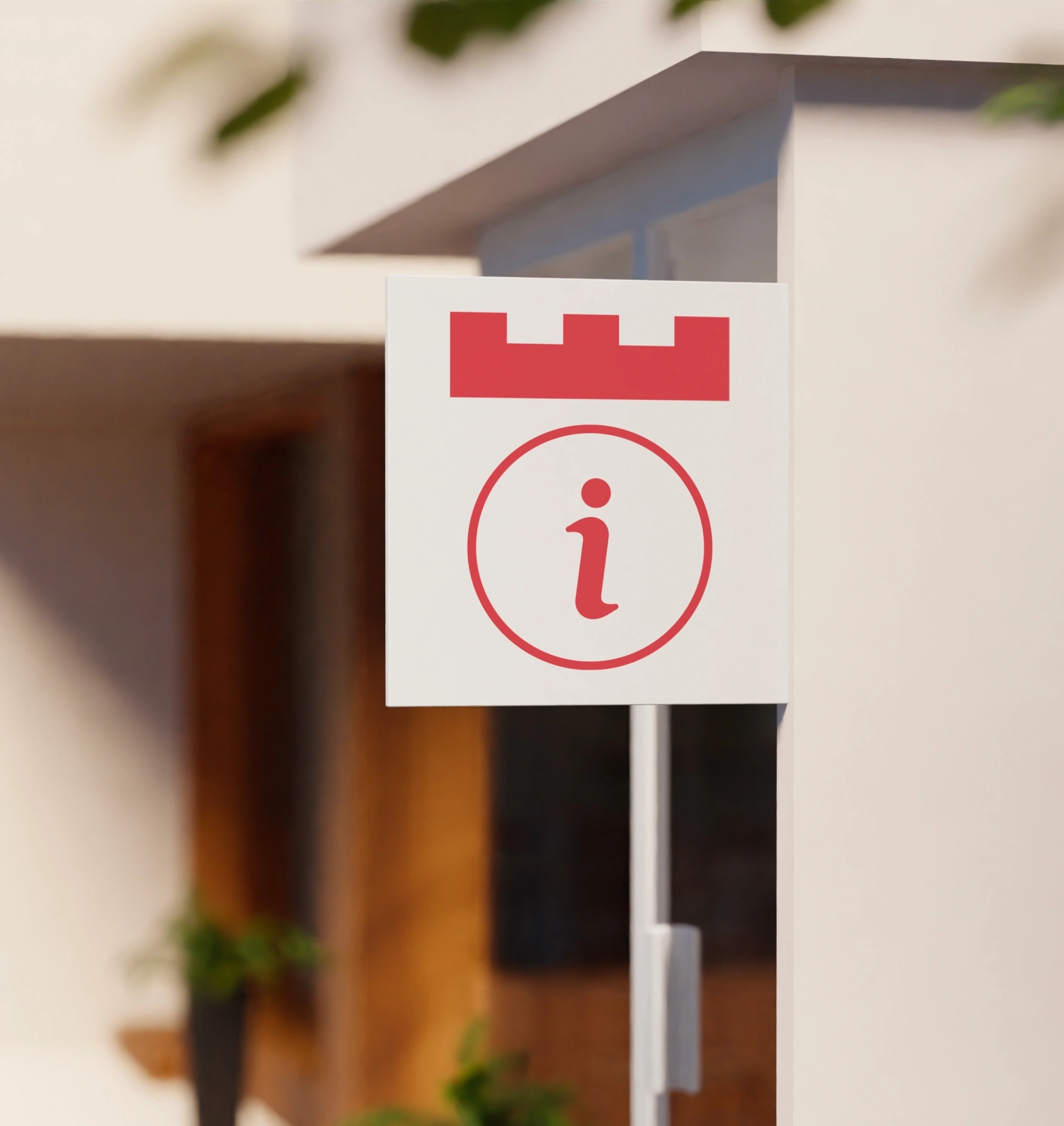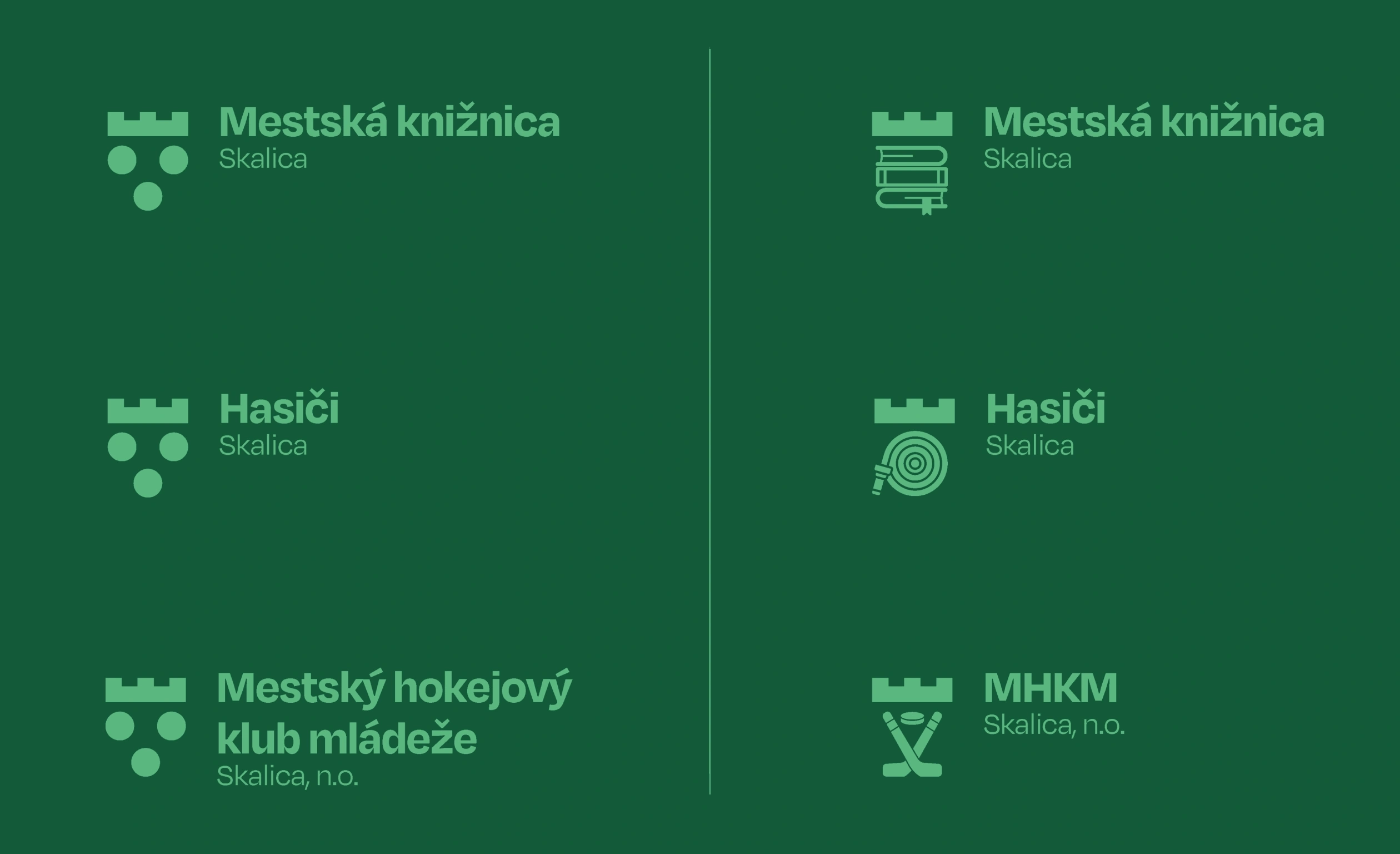 Symbol hradeb z loga dopomáhá k jednotnosti komunikace města vůči svým obyvatelům, ale i turistům. Své využití najde při označování nejrůznějších činností a organizací města. Namísto kruhů vkládáme pod hradby symboly typické pro konkrétní oblast – knihy, hasičskou hadici nebo hokejky s pukem. Hokejový symbol pak spolu s dalšími prvky identity přenášíme i do aplikace fanouškovské šály. Variabilitu hradeb dokazuje i jejich použití v piktogramech informačního značení, se kterými vytváří jednoduchý a přehledný celek.
